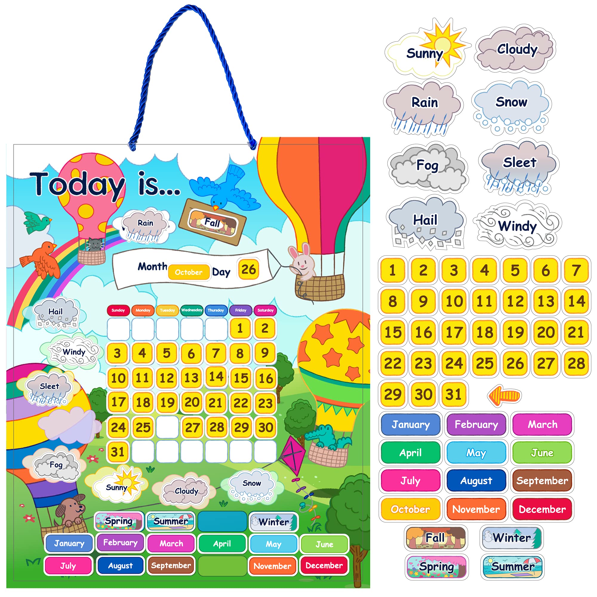 JOYIN 15” X 12” Magnetic Learning Calendar with Weather Station, My First Daily Calendar, Preschool Learning Toys for Kids Toddler, Classroom ...